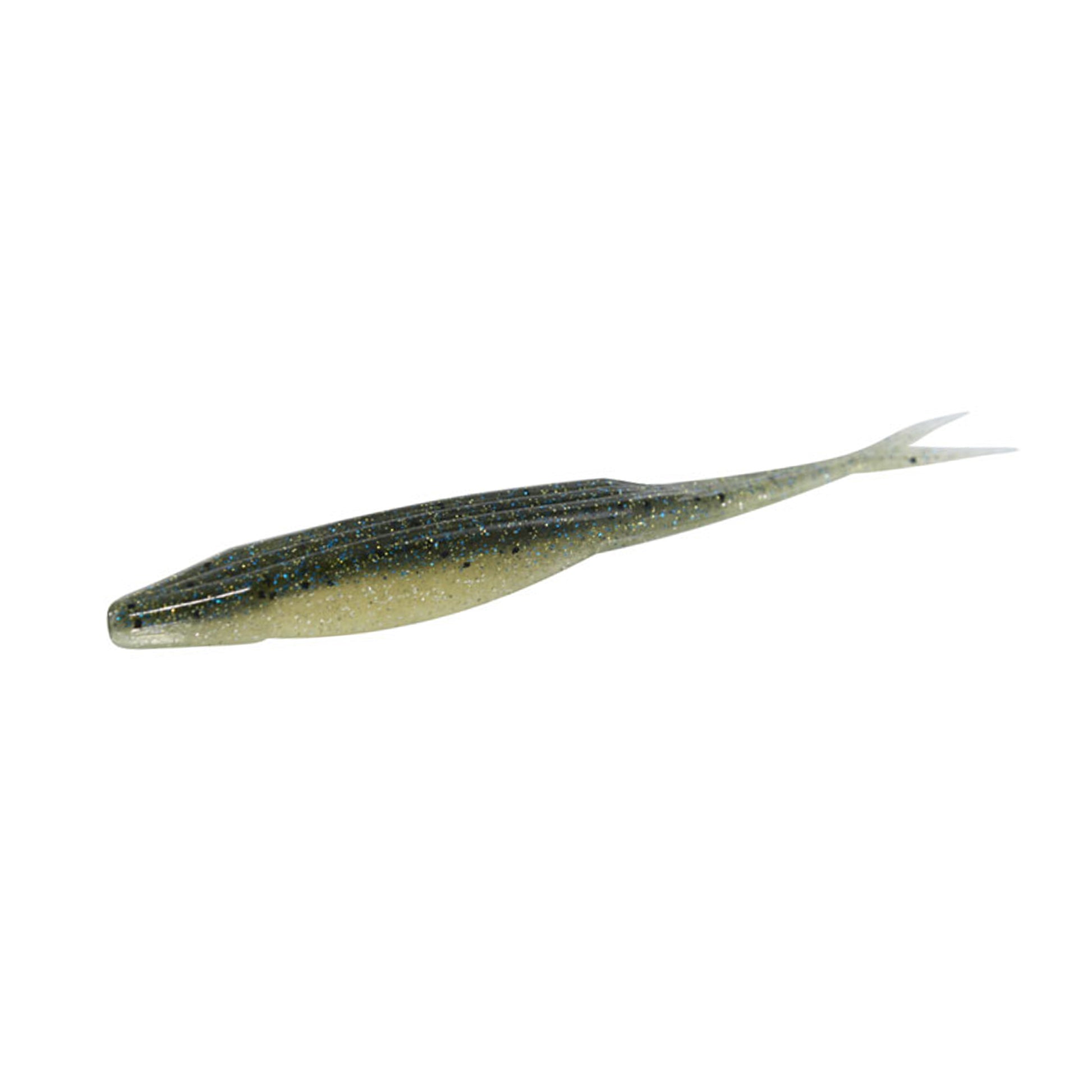 The deep belly of the Super Fluke causes it to dart, glide and knuckleball through the water, while its universal baitfish size allows it to tempt both limit-sized bass and the biggest fish on your lake. Rigged weightless, it skitters across the surface like an injured shad, but a belly-weighted hook or some insert weights allow you to employ it as deep as necessary.